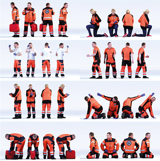 DOSCH 3D: People - Ambulance Men Vol.1 contains 10 highly realistic and fully textured 3D models of the crew of an ambulance.