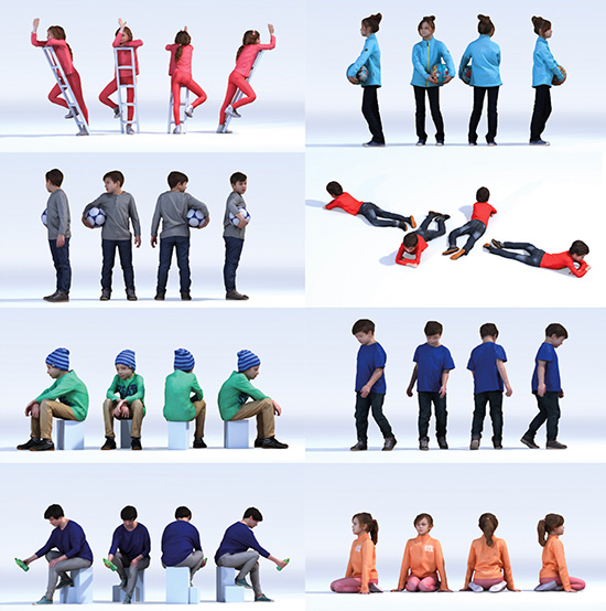 Each person is provided as a hi-poly 3D-model and as a regular 3D-model.