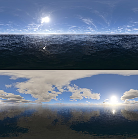 Dosch HDRI: Seascapes includes a series of 20 HDRI images of seascapes, specifically water surface scenes.