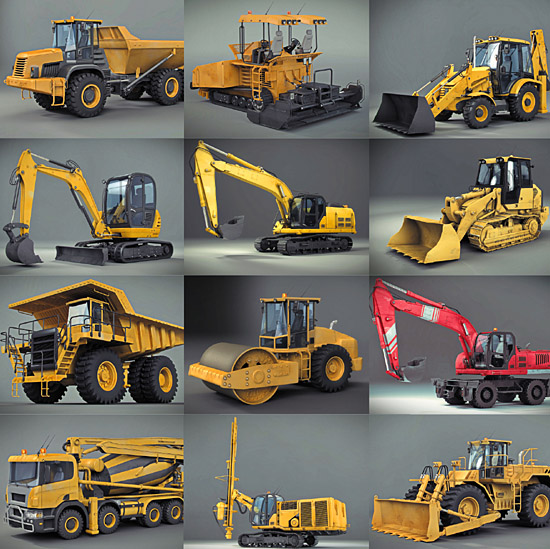 Construction sites and heavy machinery: A major project only becomes reality through the use of heavy equipment. Bring your virtual construction sites to life with detailed 3D models of cranes and construction machinery. Perfect for construction phase simulations and safety planning.