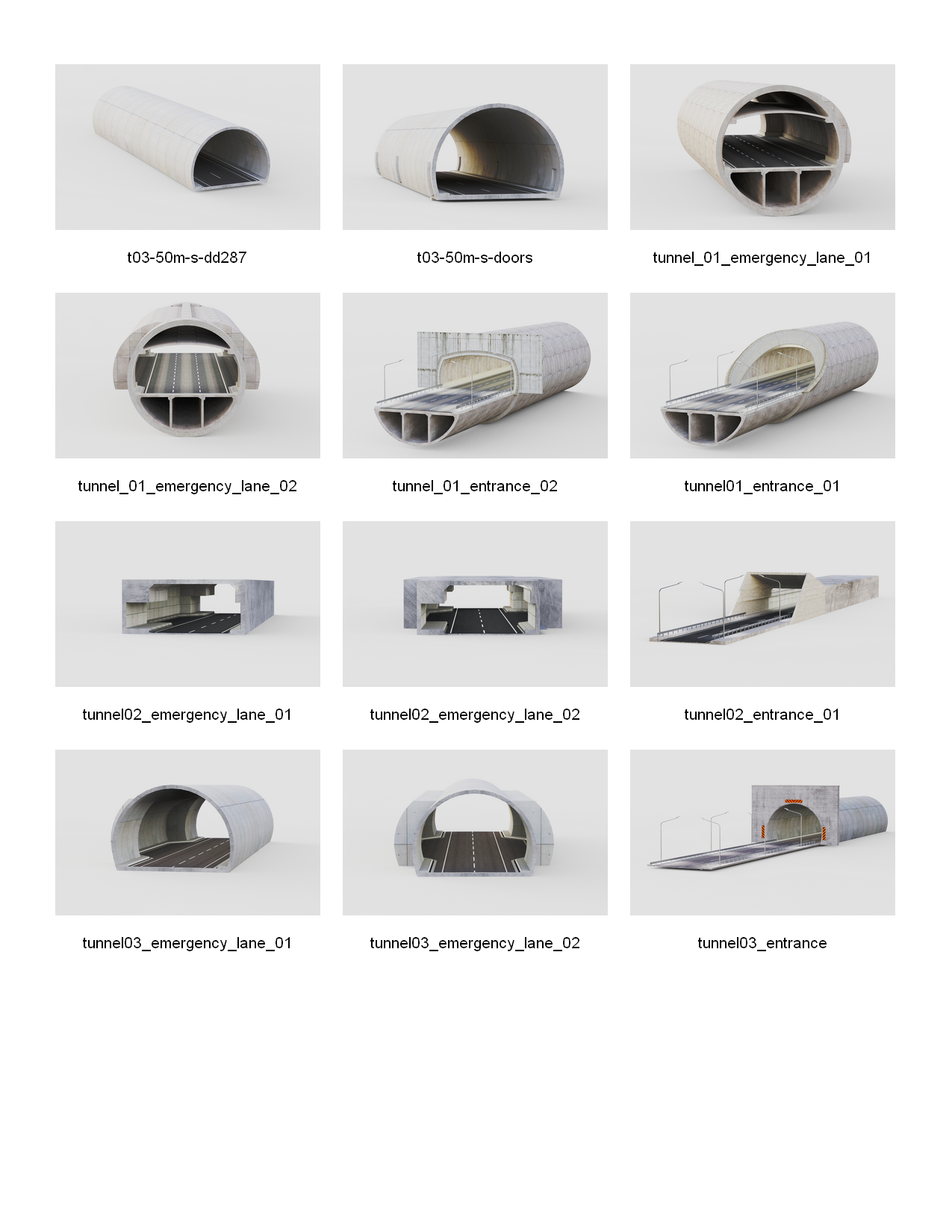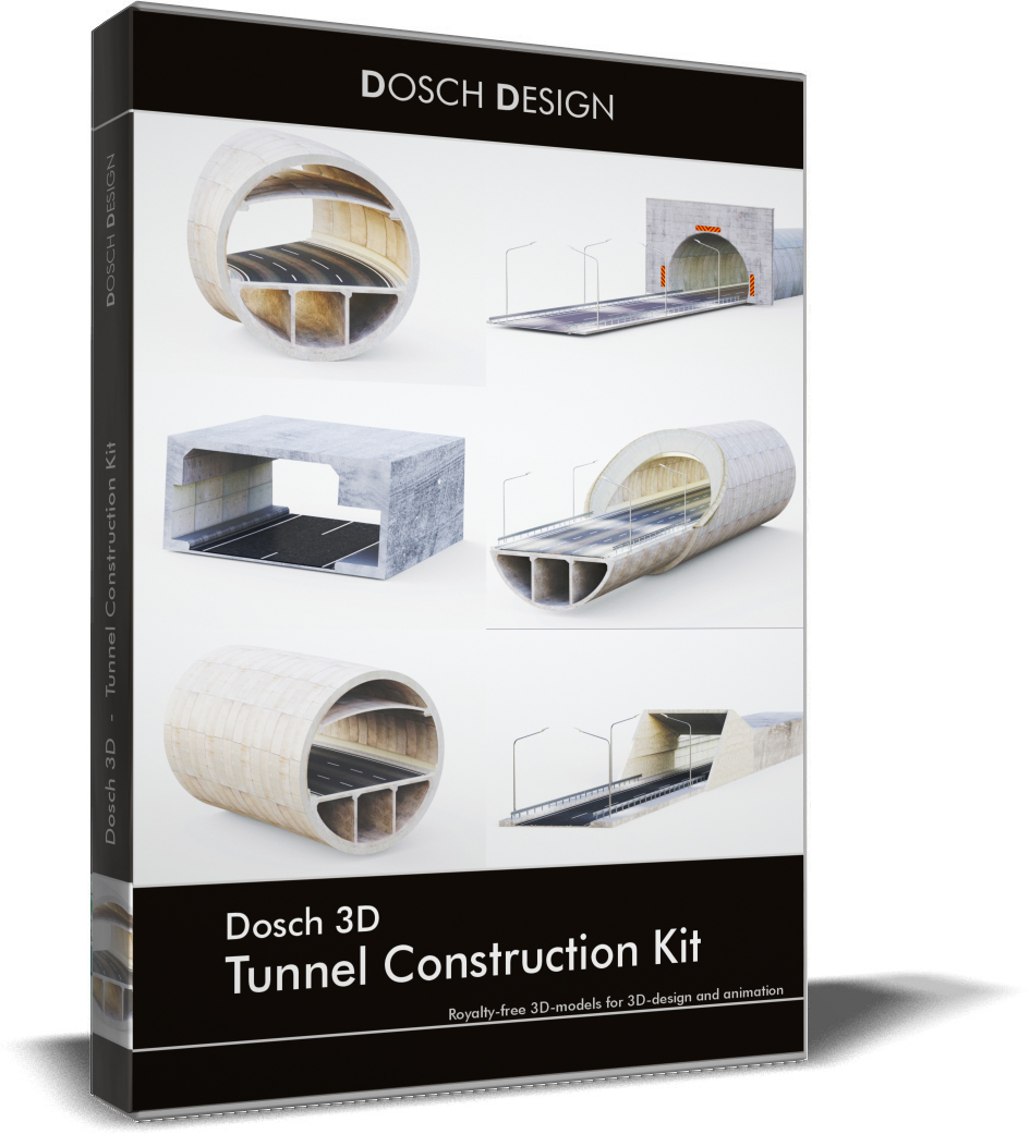 The Dosch 3D: Tunnel Construction Kit is a comprehensive collection of more than 300 professional 3D models for the efficient creation of detailed and complex tunnel systems. This product was specifically developed to meet the needs of architects, engineers, product designers, and visual marketing specialists.