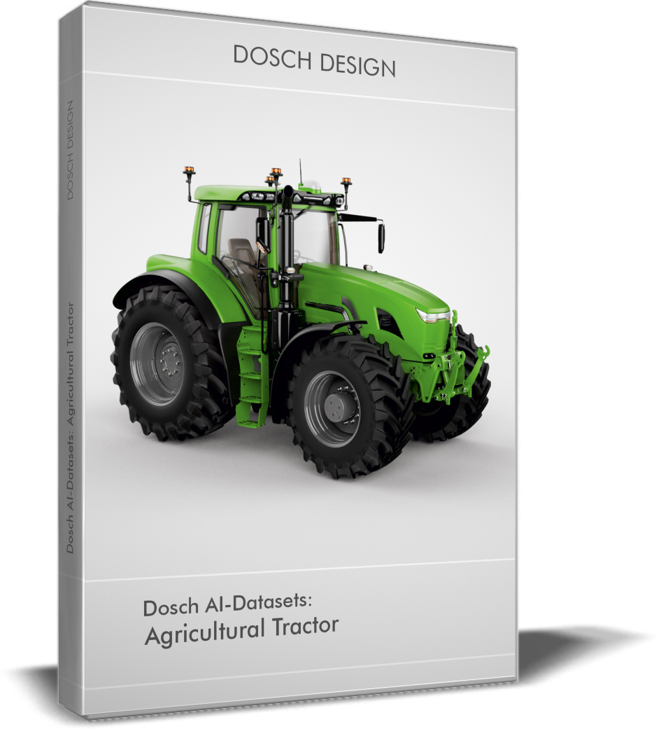 Accelerate the development of your smart farming applications with high-quality synthetic training data. This dataset contains 3,240 pre-rendered views of an agricultural tractor, including pixel-perfect ground truth data for depth, segmentation, and surface structure.