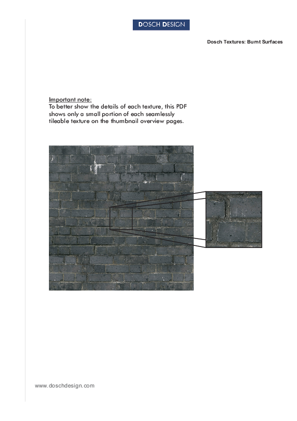 Dosch Textures: Burnt Surfaces provides 100 very detailed depictions of seamlessly tileable textures of burnt and destroyed surfaces.