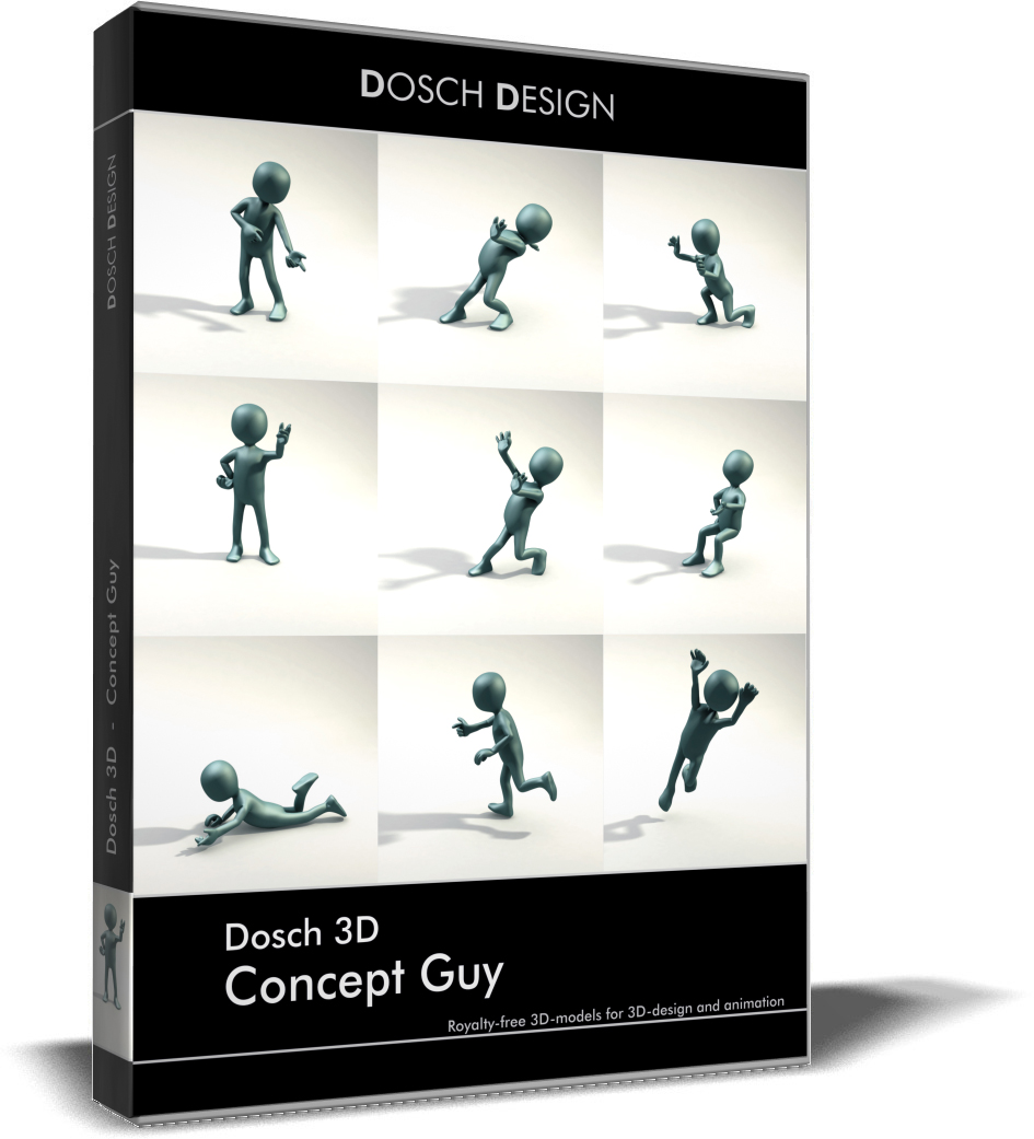 Das Produkt DOSCH 3D: Concept Guy enthält 200 3D-Modelle einer Konzept-Figur in vielen Posen.