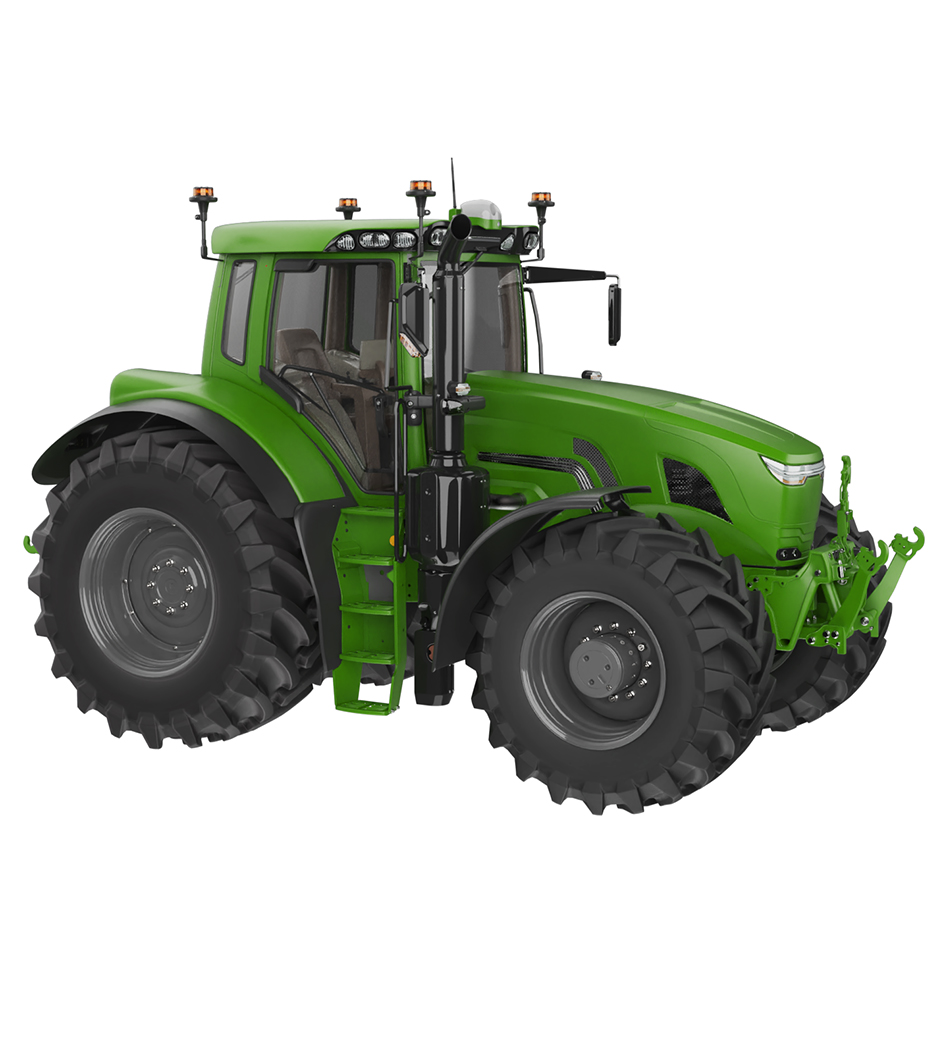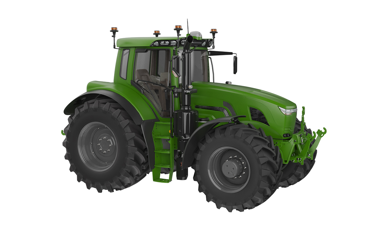 Fotorealistisches Rendering des Traktors mit transparentem Hintergrund.